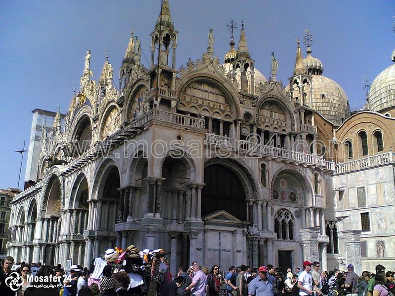 در کنار این کلیسا، قصر دوگو پادشاه ونیز قرار دارد. این کلیسا یکی از بهترین جاذبه های گردشگری میدان سن مارکو به شمار می رود. خوب است بدانید، کلیسای سن مارکو از سال 1807 میلادی به کلیسای جامع تبدیل شده است. در حیاط این کلیسای زیبا پر از کبوتران زیباست که بر زیبایی معماری آن می افزایند. به شما توصیه می شود برای بازدید از کلیسای جامع سن مارکو، لباس های مناسب به تن کنید و ورود هر گونه کیف، کوله پشتی یا هر چیز دیگر به این کلیسا ممنوع است. عکاسی نیز در این کلیسا ممنوع است. برای بازدید از این کلیسا خوب است همراه یک راهنمای تور بروید تا مفهوم موزاییک ها را براتان توضیح بدهد تا از دیدن آنها لذت ببرید. باسیلیکای جامع سنت مارک در همه روزهای هفته از ساعت 9:30 صبح تا 5 بعدازظهر برای بازدید عموم باز است. در روزهای یکشنبه نیز از ساعت 2 تا 5 بعدازظهر باز است.