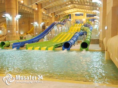 سرسره های آهسته، سرسره های سرعتی، سرسره پیچشی، سرسره موج، سرسره تاپسی توروی، سرسره تویستر، چاله فضایی، استخر موج، رودخانه آرام و خروشان، منطقه بازی کودکان، استخر برکه، سونای خشک و بخار، جکوزی سرد و گرم، رستوران، کافی شاپ، فروشگاه لوازم ورزشی، حمام ترکی و …