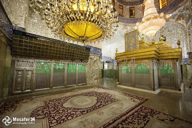 « بسم الله الرحمن الرحیم من عظائم توفیقات الله سبحانه ان وفق السلطان الاعظم مولی ملوک العرب و العجم صاحب النسب الطاهر النبوی و الحسب الباهر العلوی تراب اقدام خدام هذه الروضه المنوره الملکوتیه مروّج آثار اجداده المعصومین السلطان ابن السلطان ابوالمظفر شاه عباس الموسوی الصفوی بهادرخان . فاستسعد بالمجیء ماشیاّ علی قدمیه من دارالسلطنه اصفهان الی زیاره هذا الحرم الاشرف و قد تشرّف بزینه هذه القبه من خلّص ماله فی سنه الف و عشر و تمّ فی سنه الف و ستهعشر . »