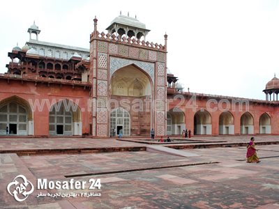 این بنا با ماسه سنگ قرمز ساخته شده و با مرمر جواهر نشان شده‌است. اکبر به این رنگ از سنگ بسیار علاقه داشت و اغلب بناهای ساخته شده در زمان او با این مصالح ساخته شده‌است. اکبر به جای دهلی شهر اگرا را به عنوان پایتخت برگزید و در آبادنی این شهر یسیار موثر بود. اکبر سعی به توافق رساندن بین ادیان مختلف رایج در هند کرد. او اهل تساهل بود و طی فرمانروایی طولانی و با اقتدار خود، سهم عمده‌ای در ایجاد آرامش در شبه قاره هند و شکوفایی امپراتوری گورکانیان به عهده داشت. از او به عنوان بزرگترین پادشاه هندوستان یاد می‌شود.