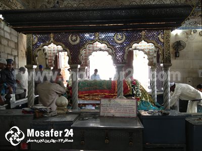 این آرامگاه شامل 4 مقبره است، همچنین مسجدی در قسمت شمالی محوطهٔ آرامگاه وجود دارد که در حدود 25 نمازگزار در آن جا می‌گیرد. در طبقهٔ بالای مسجد استراحتگاهی است که شامل 10 آطاق بوده و مسافرانی که از راه دور به زیارت آرامگاه می‌آیند در آن اتاق‌ها اسکان می‌گیرند. در ورودی آرامگاه شبیه به در ورودی مسجد است و سر در مخصوص ورودی آن داری 3 منارهٔ کوچک است. چهار طرف محوطهٔ این بنا را آب دریا را احاطه نموده‌است.