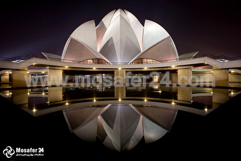 اینجا Lotus Temple یا معبد نیلوفر آبی ، معبد آیین بهائی یا مشرق الاذکار بهائیان در شهر دهلی‌نو پایتخت هندوستان است . معمار این ساختمان یک ایرانی بهایی به نام " فریبرز صهبا "است
